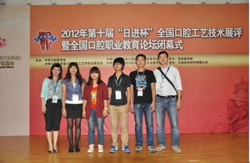 2012年9月15日我院临床医学系口腔医学教研室陈枫、徐敏锐、马清璇老师带领10级口腔修复工艺技术专业学生林若云、陈熹和11级口腔修复工艺技术专业学生叶永胜前往西安参加2012年第十届全国“日进杯”口腔工艺技术展评全口排牙和牙体雕刻比赛。我院选手沉着应战,在全国70所口腔高职院校147名各校优秀选手中脱颖而出,11级口修班的叶永胜同学以出色的表现勇夺牙体雕刻组比赛一等奖(第一名),林若云、陈熹同学获全口排牙组比赛优秀奖。陈枫、马清璇老师获得杰出园丁奖。
