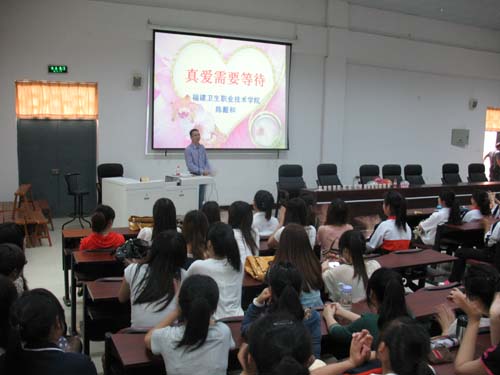 5月17日,医学基础部的陈戴和老师应福州旅游职业中专学校邀请,为该校即将走上实习岗位二百多名二年级女生举办了一场青春期性教育专题讲座《真爱需要等待》。此次讲座从解剖、生理、心理、人文关怀等多方面入手,让学生充分了解婚前性行为的方方面面,有助于女生提高自我保护意识,减少不必要的伤害。讲座中,陈老师充分运用现场游戏互动等方式,展开青少年心目中既羞于谈起,又倍感好奇的敏感话题,博得在场师生的阵阵掌声,气氛十分活跃。