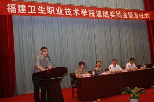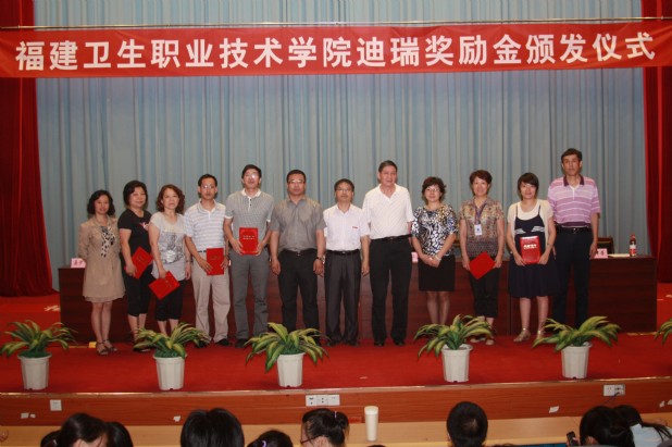 为了更好地提高医学检验技术专业人才培养的质量,进一步激发广大师生努力工作和学习,实现校企双方人才共育、过程共管、资源共建、成果共享、责任共担的紧密型校企合作办学机制,2012年6月13日下午福建卫生职业技术学院迪瑞奖励金颁发仪式在我院学术厅隆重举行。