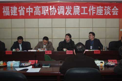 2012年2月17日,福建省中高职协调发展工作座谈会在我院召开。教育厅高教处调研工作组,我院林春明院长、廖伟坚副院长、魏立娜副院长、教务处和学工处等有关负责人,闽江学院成人教育学院、黎明职业大学、福建商业高等专科学校、漳州职业技术学院、福建信息职业技术学院、福州职业技术等六所高职学校的领导及有关负责人出席了此次座谈会。会议由林春明院长主持。