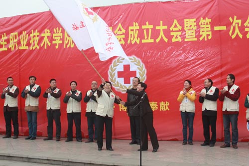 院红十字会会长、副院长魏立娜发表讲话,对我院筹备成立红十字会以来的工作作出总结,并提出了我院红十字会的发展目标。院党委严肃书记发表致辞,代表院党委向大会的顺利召开表示热烈的祝贺,并向全体会员提出自强自信、勇于担当;奉献社会、增长才干;团结协作、促进校园文化建设的希望。随后,省红十字会常务副会长黄毅敏向我院红十字会授予会旗、赠予急救药箱并发表重要讲话,他首先代表福建省红十字会向大会的顺利召开表示热烈的祝贺,希望我院红十字会不断完善健全组织架构与相关制度建设,积极宣传红十字会的基本知识,积极开展体现人道主义精神的救死扶伤、扶危济困、敬老助残的生命健康教育和实践活动,传承我院无私奉献、博爱救助的优良传统,热情洋溢的讲话博得了全场会员的阵阵掌声。最后,大会在嘹亮的福建省红十字志愿者之歌《我选择•我快乐》中胜利落下帷幕。