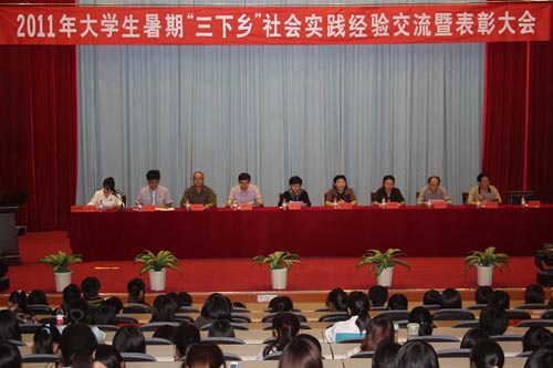 10月18日下午,院团委在学术厅隆重召开2011年暑期“三下乡”社会实践表彰大会,副院长魏立娜、学工处处长黄铭珊、院团委书记邱滚忠、副书记宋维以及各系部党团总支书记出席了表彰大会。