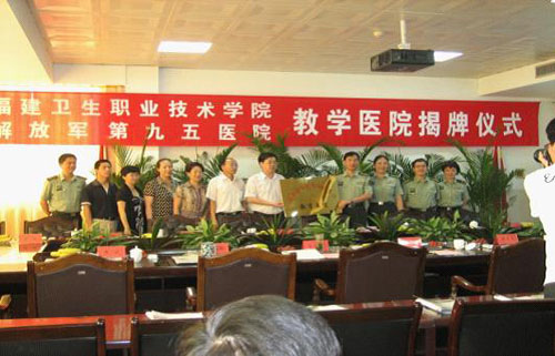 为贯彻“能力强、素质高”的人才培养理念,全面提高实践教学质量,提升办学水平, 2011年7月15日至8月25日期间,我院党委书记严肃,院长林春明等学院领导带队,赴福建省肿瘤医院、福州市第一医院、福州市第二医院、福州总院第一附属莆田九五医院、福州总院第476医院、福州市儿童医院、闽侯县医院等九家医院进行了“教学医院”挂牌仪式。学院领导还与各教学医院的主管领导、带教老师、实习生进行座谈,了解学生在实习过程中存在的问题及实习单位的意见和建议。各教学医院对我院实习生综合素质、学习态度和工作能力等方面给予了高度的赞扬和充分的肯定。对于在各教学医院征求到的意见和建议,学院表示将在各专业人才培养方案修订过程中进一步完善,做到理论和实践相结合,为培养高端技能型人才打下良好的基础。教学医院的顺利挂牌是学院与医院实现资源共享、优势互补、相互协作、共同发展的良好契机,标志着学院实践教学基地的建设进入新的阶段。 (教务处)