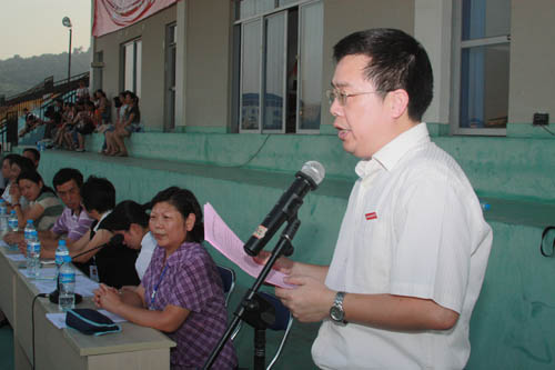 16日下午四点,在田径场举行了新生开学典礼暨军训会操总结大会。学院严肃书记、林春明院长、陈雄副书记、廖伟坚副院长、黄开良副院长、73919部队桑立新政委等领导出席了大会,魏立娜副院长主持大会。新生们用自信的口号、整齐的动作向大家展示了几天来的训练成果,获得了在场领导及师生的阵阵掌声。会操表演结束后,大会宣布了此次军训获奖的集体和个人,2010级医学技术系老生代表和2011级临床医学系新生代表做了热情洋溢的发言。最后,林春明院长作了总结讲话,首先,他代表学院党政领导和全院师生、医护人员欢迎新同学的到来,感谢73919部队教官和学院辅导员在军训中所付出辛勤劳动;其次,肯定了同学们在教官的指导下刻苦训练,比学赶超,创先争优,互帮互助,共同提高,圆满完成了军训任务;最后,林院长对大家提了三点要求和希望:一是转变角色,勤奋学习,二是牢记校训,树立爱心,三是全面发展,立志成才。(学生工作处)