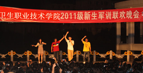 2011年9月15日晚,我院在音乐广场隆重举行2011级新生军训联欢晚会,73919部队教官、我院教师及2011级新生到场观看。院党委严肃书记、73919部队毛立新副部队长、政治部陈锦辉主任、院党委陈雄副书记、廖伟坚副院长、魏立娜副院长出席了晚会。