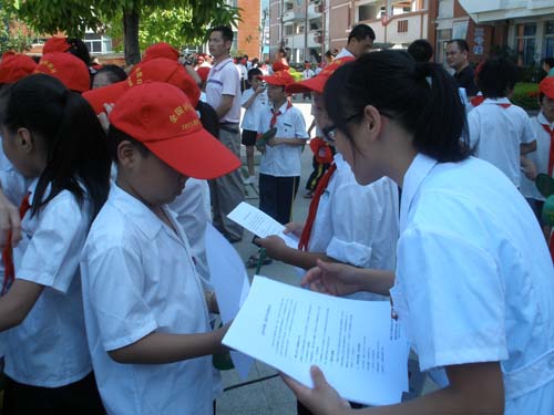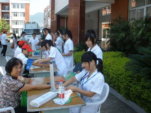启动仪式结束后,志愿者们通过科普展板的讲解和分发宣传单,向闽侯一中、闽侯实验小学昙石分校的广大师生宣传“保护水资源,节约用水”、“营养与膳食” 的有关知识,并为他们提供血压测定、肥胖指数测定、色盲色弱检查、营养咨询等服务。
