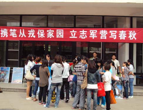 为了响应信息化军队的建设,吸引高素质人才入伍,我院于2011年10月14日配合闽侯县征兵办公室举办“携笔从戎保卫国家,立志从军写春秋”的征兵宣传活动。