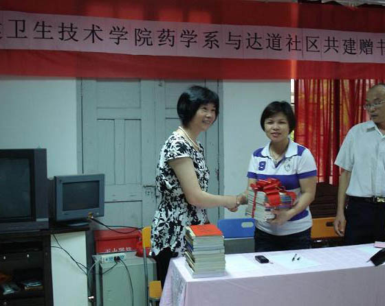 7月9日,药学系与台江区洋中街道达道社区举行“爱心书屋”捐赠仪式,捐赠图书900多册及书款600多元,福州新闻网等媒体到现场进行报道;护理系深入台江区洋中街道玉树社区,开展血压测量、六步洗手法教授、夏季多发病防治宣传、营养健康咨询等活动,并进行护士礼仪表演;临床医学系到台江区洋中街道铺前社区,向社区居民介绍了义诊活动的内容,包括测血压、测血型、色盲检查、健康知识普及、问卷调查等活动,获得了广大居民的一致好评。