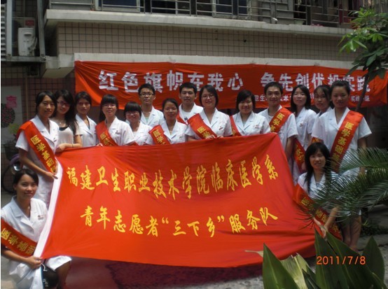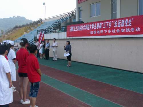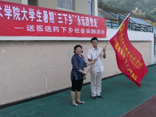 7月8日,我院举行2011年“三下乡”暑期社会实践活动启动仪式,魏立娜副院长为我校赴龙岩武平实践团授旗,团委邱滚忠书记为药学系、护理系、医学技术系和临床医学系实践团队授旗,标志着我院2011年暑期社会实践活动全面开展。