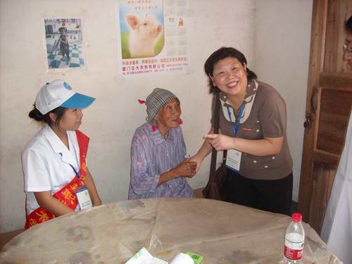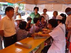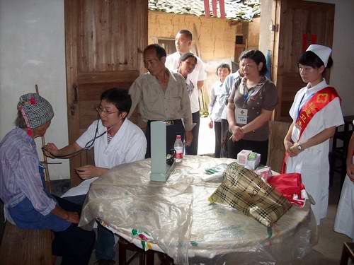 次日早晨,实践团队按预定计划兵分两路,魏立娜副院长带领一部分队员,在武平团县委领导的陪同下,深入武平县最北部的大禾乡,考察基层的卫生资源状况,与大禾乡卫生院负责人座谈并赠送药品,并到贫困烈属家中,进行体检义诊。另一部分队员在院团委老师的带领下,在武平县中心城区开展医保宣传、献血控烟宣传、体检义诊赠药等活动,前来咨询的群众络绎不绝,现场气氛热烈。上午的活动结束后,大家经过短暂休息,又马不停蹄的投入到下午的工作中。魏副院长等来到武平团县委办公室,同团县委、县卫生局领导就基层卫生人才培养,加强双方交流合作等事宜进行了座谈,听取了我院挂职干部叶文伟老师半年以来的工作汇报,其后进行了简短的电脑赠送仪式。另一部分队员来到武平县光荣院,为光荣院里的老人义务体检诊疗,赠送药品。
