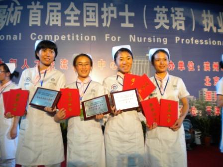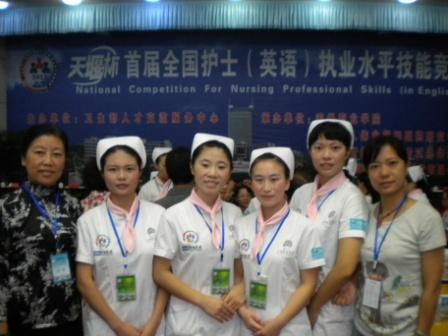 2011年8月21日至23日,“天堰杯”首届全国护士(英语)执业水平技能竞赛在山东省滨州市举行,来自全国各地53家院校的59支队伍参加了大赛。我院护理系代表队四名参赛选手(07涉外护理501班王超、09护理301班卓芳、09助产301班林宇、07涉外护理502班陈丽)精心备战,稳定发挥,取得高职组团体总分二等奖、团体技能操作成绩二等奖、团体理论成绩三等奖的优异成绩!参赛领队护理系刘登蕉主任获得“优秀组织者”荣誉称号,指导教师李淼淼荣获“优秀指导教师” 荣誉称号!(护理系)