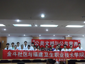 5月18日,15名师生组成的科普志愿者参加闽侯县“2011年科技•人才活动周”启动仪式,围绕着“营养与健康同行”的主题开展了血压测量、营养咨询、色盲色弱筛查、营养、健康知识宣传讲解等活动,吸引了众多居民,得到广泛好评;5月21日,在台江区金斗社区举办了一场“饮食与健康”的科普讲座,受到社区居民的热烈欢迎。此外,活动期间,我院通过开通专题网站,举办校内“食品安全教育”、“营养奥秘的探索”讲座,到福州财金职业中专学校举办青春期性教育讲座等方式进行科普宣传。(医学基础部 临床医学系)