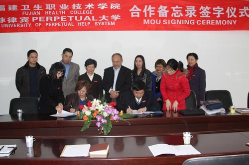 3月2日—4日,菲律宾Perpetual大学校长、Far Eastern大学顾问Dr.Karen Tamayo女士、纽约——长老会医院哥伦比亚及康奈尔大学医学中心的特别顾问Samuel Lebrfeld等一行6人来我院访问。双方着重就护理人才培养等合作项目进行了协商座谈,并达成共识。林春明院长和Dr.Karen Tamayo女士分别代表双方签订了合作办学协议书。(办公室)