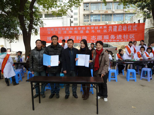 2011年1月8日上午,我院医学技术系与台江洋中街道金斗社区,在市工人文化宫门前开展“共建共创文明社区活动启动仪式暨健康科普知识宣传教育”活动,医学技术系马少宁主任、洪聿荣副书记、郭礼坚副主任及洋中街道曾军副主任、金斗社区陈艳主任出席了本次活动。医学技术系的专业教师、学生等20多位志愿者为社区居民提供血型鉴定、血压测量、营养咨询、常见寄生虫介绍及寄生虫病症防治、艾滋病及传播途径介绍等服务,以及放射科防护知识普及、无偿献血普及等宣传教育。福州电视台、福州日报对本次活动进行了现场采访和专题报导,福州新闻网等各大网站也对本次活动进行了相关刊载和报道。今后,医学技术系将组织师生利用节假日轮流深入金斗社区,开展社会实践活动,成为社区的医学科普知识宣传员、文明新风倡导员、社情民意信息员、基层群众服务员,为创建文明社区贡献力量。(医学技术系)