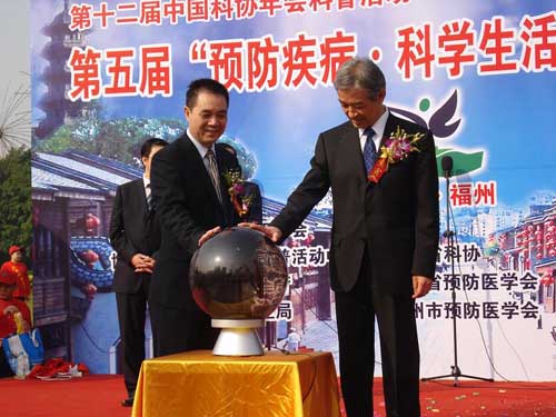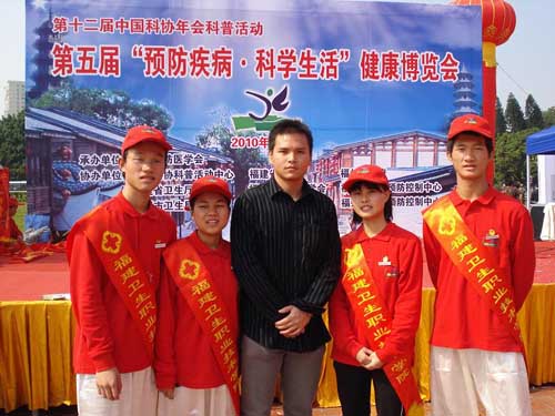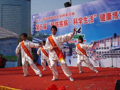 2010年11月2日上午9:00,在福州市五一广场隆重举行第十二届中国科协年会科普活动启动仪式,我院团委组织部分青年志愿者由王钝锐老师带队参加了由中华预防医学会承办的第五届“预防疾病·科学生活”健康博览会。 在健康博览会上,我院4名青年志愿者登台献上精彩的二十四式太极拳表演,为广大市民推广科学健身方法,促进群众健身技能的提高。活动现场,中国工程院院士、中华预防医学会王陇德会长与我院青年志愿者亲切交谈,详细询问我院学生课余活动开展情况,并鼓励志愿者积极开展群体性科学健身活动。(院团委)