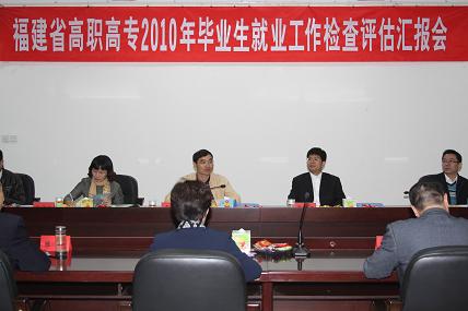 2010年11月4日,福建省公务员局暨福建省大中专毕业生就业工作领导小组专家组一行5人莅临我院进行2010年毕业生就业工作检查评估。院党委严肃书记、陈雄副书记、学工处、团委、就业办以及各系部书记、行政秘书和辅导员参加了评估汇报会。会上,毕业生就业领导小组组长严肃书记对评估组专家的到来表示热烈欢迎,并代表学院汇报了我院2010年毕业生就业工作开展情况。会后,评估组实地考查了就业工作的场所、设施,认真查阅了相关材料。