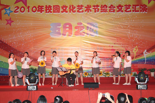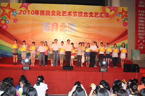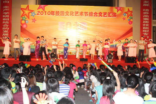 5月25日, 我院在图书馆前隆重举行“2010年校园文化艺术节暨五月之恋”大型综合文艺晚会。院党委书记严肃、院长林春明、党委副书记陈雄、副院长廖伟坚、黄开良、魏立娜及相关部门负责人出席晚会,与同学们一起观看了演出。
