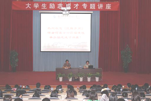 为加强对学生励志成才教育,提升校园人文氛围,丰富校园文化,2010年6月8日,我院邀请《抚摸岁月》的作者何英女士为我院大学生做“励志成才”主题讲座。院党委严肃书记、魏立娜副院长,学工处郑力宏处长、黄铭珊副处长,全体辅导员和四百多名学生参加了本次讲座。