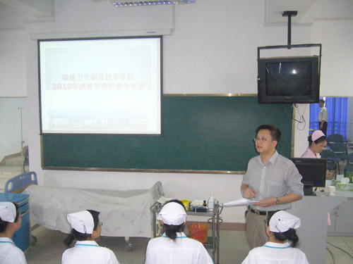 学院2010年度青年教师教学竞赛经个人申报、教研室推荐、系部预赛选拔,现已进入决赛阶段。 6月10日下午进行了第一场决赛,林春明院长、廖伟坚副院长、魏立娜副院长莅临决赛现场。护理系连剑娟老师、医学技术系林雪金老师进行了说课和模拟课堂教学,她们思路清晰、表达流利,展现出当代青年教师的风采,两位老师的现场表现受到评委的好评。(科研处)
