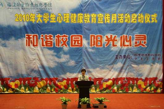 为促使学生科学地认识和了解心理健康知识,掌握必要的心理调适方法,5月4日晚,学院心理健康教育中心和学生工作处在学术厅联合举行“2010年大学生心理健康教育宣传月活动启动仪式”。