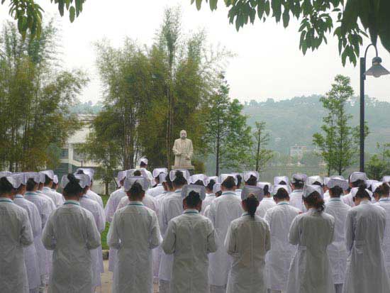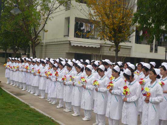 为纪念国际红十字运动创始人亨利·杜南诞辰182周年,2010年5月8日上午,我院护理系100多名学生代表身穿洁白的护士服,在亨利·杜南像前举行纪念活动。