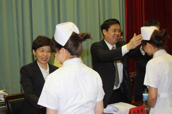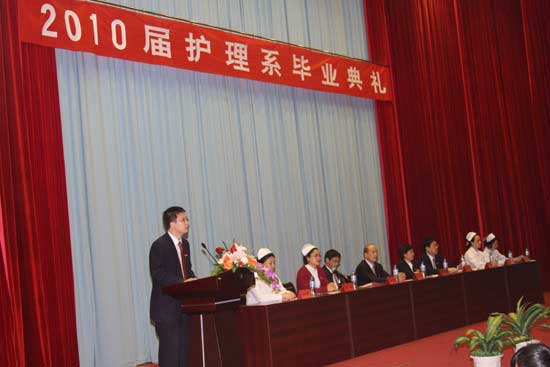 出席本次典礼的有院党委书记严肃、林春明院长、陈雄副书记、廖伟坚副院长、李红副院长、黄开良副院长及护理系、附属医院护理部全体老师和2010届护理、助产专业全体毕业生,典礼由李红副院长主持。