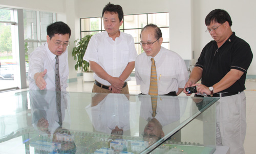 5月23日上午,台湾嘉南药理科技大学王昭雄董事长等一行3人莅临我校参观。林春明院长代表学院对台湾客人表示热烈欢迎,并介绍了学院情况。随后,王昭雄教授一行参观了校园和药物制剂实训车间,双方希望两校以药学为重点,加强交流与合作。(办公室)