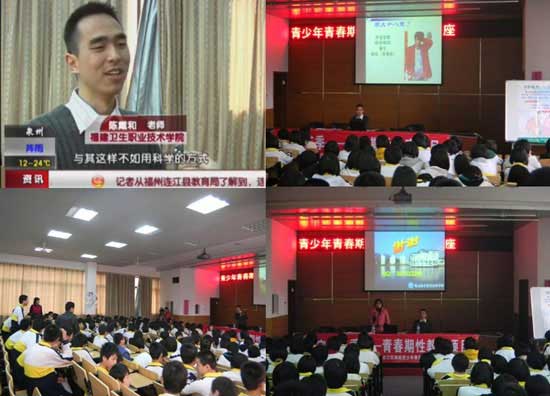 在题为“可爱女人&完美型男”的专题讲座中,陈戴和老师以形象生动的图片、科学直观的方式,向中学生宣传了青春期相关医学知识,对青春期常出现的问题(如早恋,自卑心理等等),给予积极正面的引导,并与学生进行互动,效果良好。据调查结果显示,初中生平时不易从父母了解到青春期知识,不少学生第一次如此和老师面对面谈性知识,既兴奋,又害羞,听了讲座均反映受益匪浅。讲座结束后,记者采访部分学生及陈戴和老师,并于次日(4月8日)晚19:30在福建教育电视台“第E时间”栏目里播出。