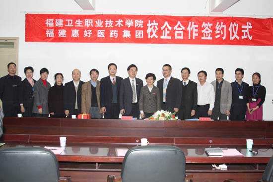 2010年3月18日下午,我院在行政楼四楼会议室隆重举行与福建惠好医药集团的校企合作签约仪式。首先,林春明院长代表学院讲话,指出我院与惠好医药友好合作关系的正式确立,标志着双方之间的交流合作进入了一个实质性发展阶段,将对双方产生积极而深远的影响。其次,陈勇总经理代表惠好医药集团讲话,他认为,此次合作让企业与学院的资源得到合理配置,将推进惠好医药集团人才水平的不断提升。会上,林春明院长与陈勇总经理签订校企合作协议,并向惠好医药集团兼职教师代表苏君发放聘书。