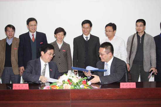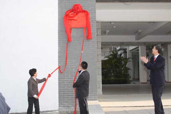 在药学系系部,严肃书记和陈勇总经理为校企合作揭牌。签约仪式结束后,在廖伟坚副院长和欧春木主任的陪同下,惠好医药集团参会人员参观了药学系。