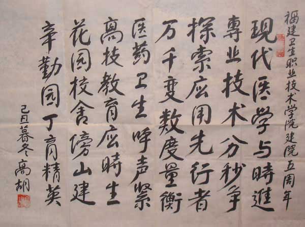1月8日上午,学院邀请部分离退休老同志参加“开卷有益”石刻揭幕仪式。院党委书记严肃首先对老同志莅临学院参观指导表示欢迎,并衷心感谢老同志长期以来对学院的关心支持,林春明院长向老同志汇报了学院工作。原省卫校第一任校长、原省委常委、省委组织部长、省政协副主席高胡等老同志对学院发展感到欣慰,高老现场赋诗一首:“现代医学与时进,专业技术分秒争。探索应用先行者,万千变数度量衡。医药卫生呼声紧,高技教育应时生。花园校舍傍山建,辛勤园丁育精英。”高老的新诗表达了老同志对学院的美好祝愿。