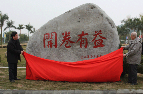 接着,高胡老校长和林春明院长为图书馆前“开卷有益“石刻(高胡题写)揭幕。随后离退休同志在院领导的陪同下参观了校园。(办公室)