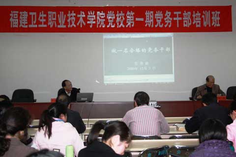 12月3日下午,我院第一期党务干部培训班开班仪式在行政楼六楼会议室举行。原卫生厅直机关党委专职副书记张美能同志应邀出席并进行辅导授课。院党委严肃书记、陈雄副书记出席了开班仪式。各党总支委、支部委员、党委工作部、纪检监察室、工会、团委负责人等党务干部60余人参加了开班仪式。开班仪式由党委副书记陈雄同志主持。