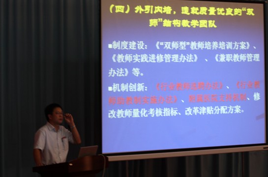 下午的会议由廖伟坚副院长主持,首先由参会人员分六个小组围绕本届交流会“创新培养模式,强化办学特色,提高教学质量”的主题进行讨论,各小组组长对讨论结果进行了汇报。接着林春明院长作了会议总结,他肯定了全院教师在教研科研工作中辛勤付出,认为此次交流会主题突出,内容丰富,教职工们参与踊跃,对学院的建设发展提出了很好的意见和建议,要求相关行政部门要对这些意见和建议进行梳理并落实到行动上。林院长还从学院目前的实际出发谈了未来两三年的工作思路,指出学院要从办学目标定位和办学规模、推进人才培养模式改革、专业建设与闽台教育合作、课程建设、师资队伍建设、实训实习基地建设、制度建设、社会服务、学校文化建设、附属医院建设等方面入手抓好十项工作。最后他对全体教师提出了三点希望:一、要多关心关注学院的建设和发展;二、结合办学目标提升自身素质,包括教育理念、知识结构和职业技能;三、要关爱学生,共同促进学生的健康发展。