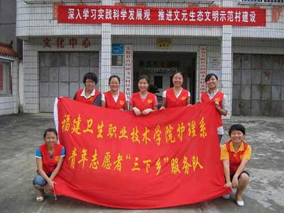 护理系“红土地”暑期社会实践小分队于2009年7月8日至7月11日前往龙岩市上杭县古田镇开展暑期“三下乡”社会实践活动。“红土地”暑期社会实践小分队由7名班团干部和辅导员赖文金老师组成。小分队采取集中和登门拜访的方式,为老区群众提供体检、健康咨询指导,与群众同吃同住同劳动,开展建设社会主义新农村调研,以实际行动发挥党团员的先锋模范作用,践行社会主义荣辱观。整个活动,小分队共服务革命老区群众500余人次,分发药品1000余元,完成调查问卷100余份。小分队还到古田会议遗址参观学习,接受爱国主义、革命主义教育。队员们表示,“星星之火,可以燎原”,当前海峡西岸经济区建设正在如火如荼的开展,他们将继承发扬党的优良传统,把火热的青春投入到社会主义和谐社会的建设中,投入到社会主义新农村的建设中,投入到海峡西岸经济区建设中,在奉献中实现自己的人生价值。(护理系)