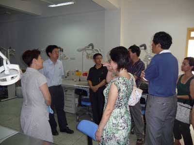 林春明院长、黄开良副院长实地考察检验专业与口腔专业的实训室,并认真听取系部负责人和教研室主任关于检验专业、口腔专业实训基地建设规划的汇报。