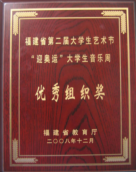 在本届大学生艺术节“迎奥运”大学生音乐周中我院荣获省教育厅颁发的“优秀组织奖”。(院团委)