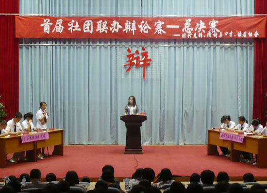 我院团委组织院社团部的时代先锋社、演讲与口才俱乐部和院读者协会三个学生社团,于6月2日15:00在学术厅举办首届社团辩论赛总决赛。