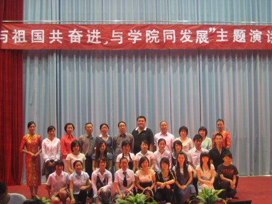 为庆祝中华人民共和国成立60周年,院团委于2009年5月12日晚在学术厅举办 “与祖国共奋进,与学院同发展”主题演讲比赛。