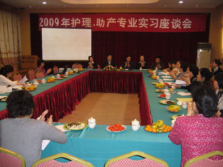 2009年4月10日下午,我院护理(助产)专业实践教学委员会2008学年实习教学工作会在闽江饭店会议厅举行,我院护理(助产)专业实践教学委员会成员及省、市、区医院的相关负责人,共计有来自20余个单位的40 名代表参加了会议。