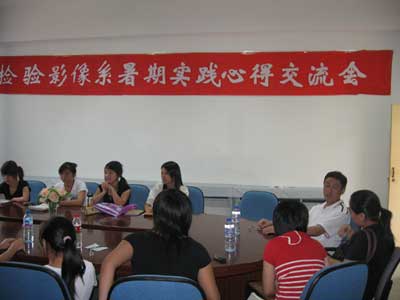 9月11日下午4点,检验影像系在系部三楼会议室举行了暑期社会实践心得交流会。出席本次交流会的有:马少宁主任、洪聿荣书记、周微琳老师、黄小芳老师以及各班同学代表。会议气氛融洽,同学们各抒己见,畅谈在实践中的所见所闻和所感。