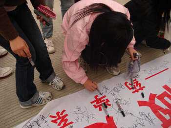 为了维护考试的公平、公正,加强对学生遵守考场纪律的教育和管理,强化学生的自律意识,营造诚实守信的考试环境,树立文明良好的学习风尚,药学系于2008年1月10日在系馆门口举行主题为“诚信应考,从我做起”的签字仪式。