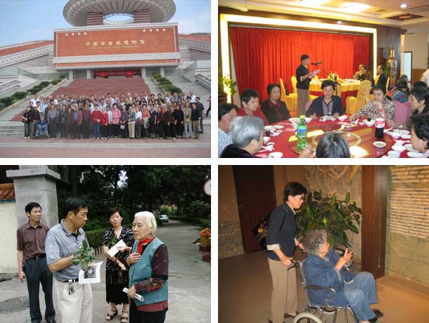 左下:重阳节严肃书记、陈明非院长看望原校领导 右下: 严肃书记和老同志一起参观闽台缘