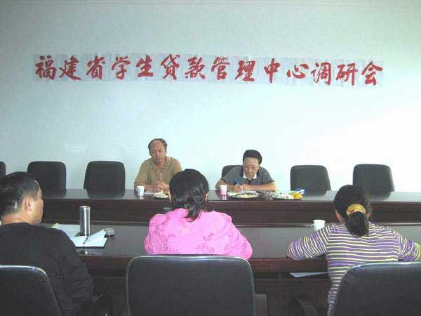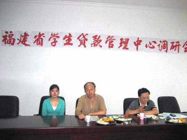 2007年10月12日下午,福建省学生贷款管理中心吴选兴主任和方舒峰科长到我院对学生资助工作进行调研。此次调研的目的是检查我院贯彻执行国家新资助政策情况、了解目前资助工作执行过程中存在的困难和问题。院党委委员魏立娜、学工处、财务处主要负责人郑力宏、黄铭珊、张赛彬参加了调研会。
