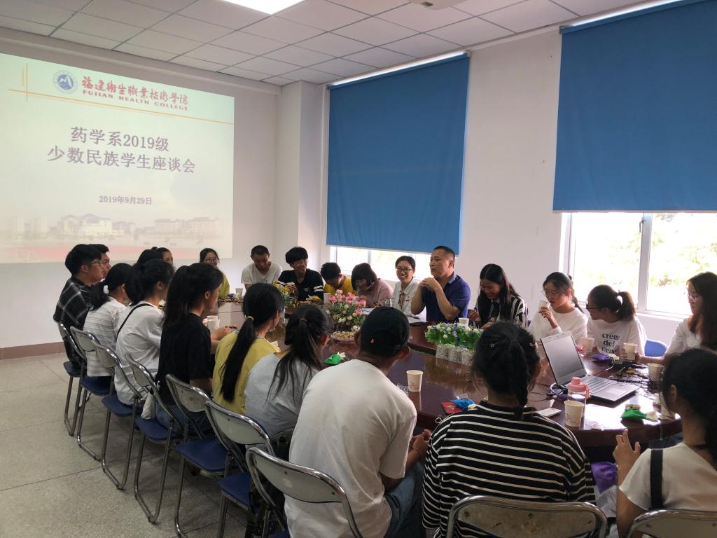 为深入贯彻落实“不忘初心、牢记使命”主题教育要求,认真执行党和国家的民族政策,9月29日,药学系党总支举办了2019级少数民族新生座谈会。本次会议邀请了涵盖藏族、维吾尔族、仡佬族、彝族等15个少数民族的24名新生到场。药学系党总支书记郑力宏、副书记赖文金出席座谈会。