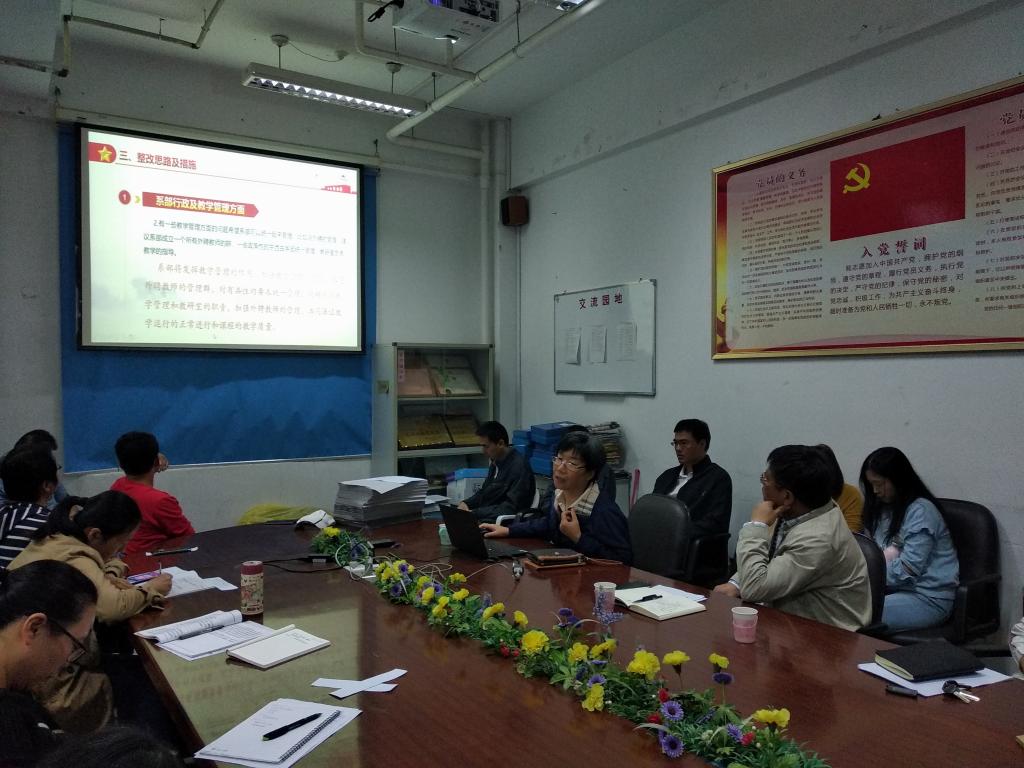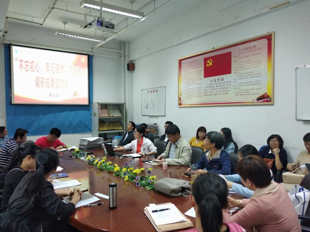 结合“不忘初心、牢记使命”主题教育,基础部领导班子成员广泛联系基础部行政管理人员、教研室主任、骨干教师、青年教师等进行座谈会交流、个别访谈,围绕教师反映强烈的热点问题进行调研。在此基础上,2019年11月7日,基础部开展 “不忘初心、牢记使命”主题教育调研成果交流会。学院巡回指导二小组苏友新院长莅临指导。会议由系部阮秋容副主任主持,全系教职工参加了本次会议。