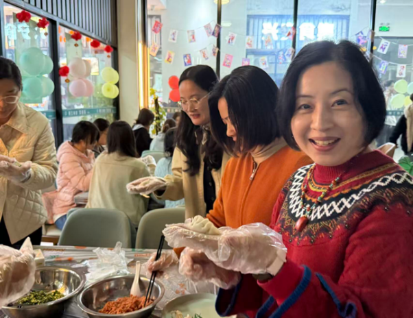 包饺子环节堪称“暖心重头戏”。40名少数民族学生分成8个小组,新鲜食材整齐陈列。有经验的同学化身“小导师”,手把手传授包馅、捏褶技巧;教师主动融入,创意包出花朵、小动物等特色饺子,现场欢声笑语不断,尽显“民族大家庭”的温暖。
