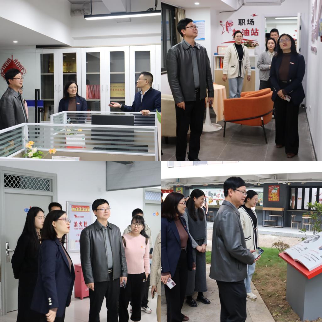 在福建医科大学医学影像学院党委副书记黄东灿、团委书记吴文捷的陪同下,我校师生先后实地走访了医学影像学院“青耕”学生工作站、药学院学生工作站、基础医学院“橘井·初心书院”及医学影像学院“致远书院”等多个“一站式”学生社区示范点。每到一处,我校师生都认真聆听介绍,细致观摩环境,详细了解社区空间规划、功能布局、队伍进驻及活动开展等情况。福建医科大学将育人元素深度融入生活场景的建设理念,尤其通过综合服务站、党建主题园区、多功能共享空间等载体,实现思想引导、学业支持、生活服务一体化,给予我校师生深刻启发。