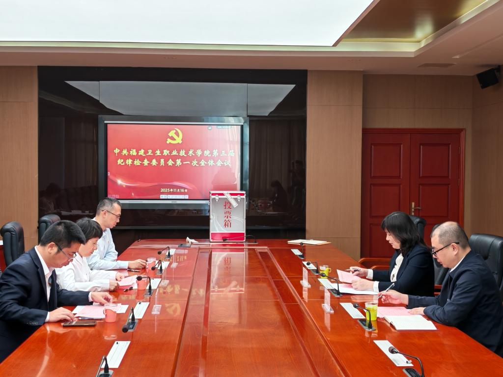 11月16日,由中共福建卫生职业技术学院第三次党员代表大会选举产生的中共福建卫生职业技术学院第三届纪律检查委员会在厚德楼五楼会议室召开第一次全体会议。