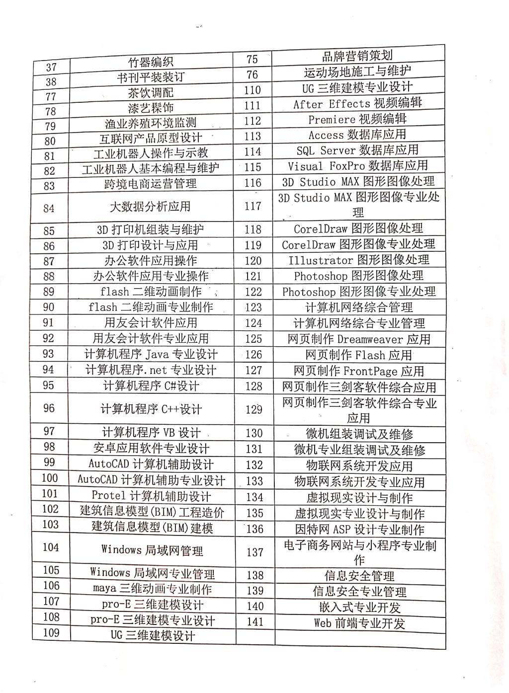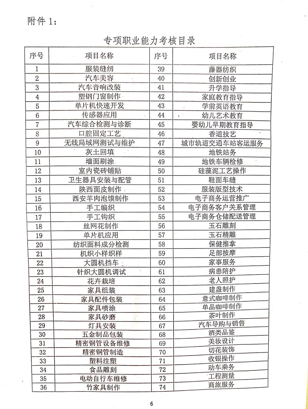 专项职业能力考核目录